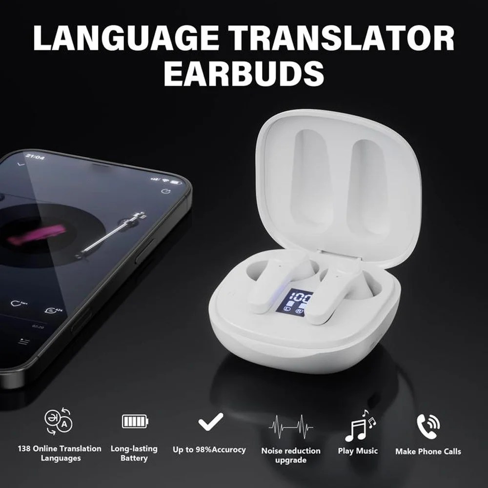 1 Pair Ourlife AI Language Translator Earbuds – Wireless Wireless Headphones with 144 Language Real-Time Translation
