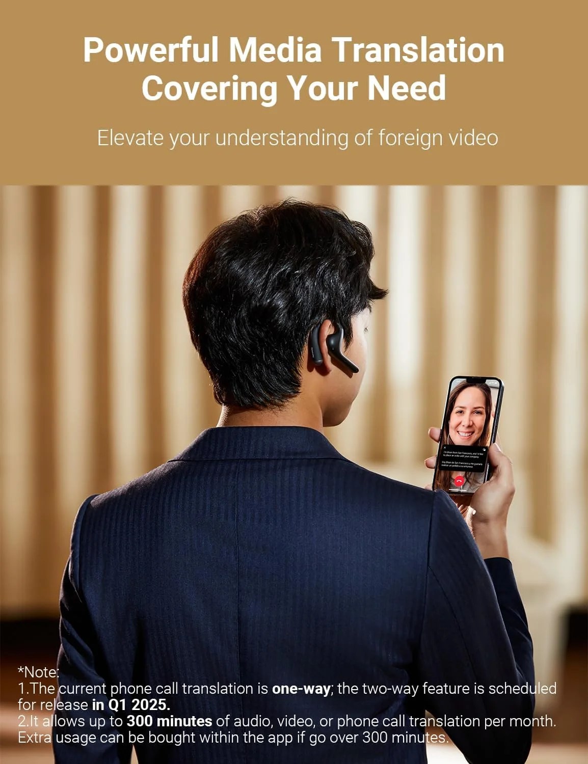 AI Interpreter Earbuds,Bidirection Simultaneous Translation,Translator Device Supporting 40 Languages, Earbuds for Video and 1-way Phone Callsz