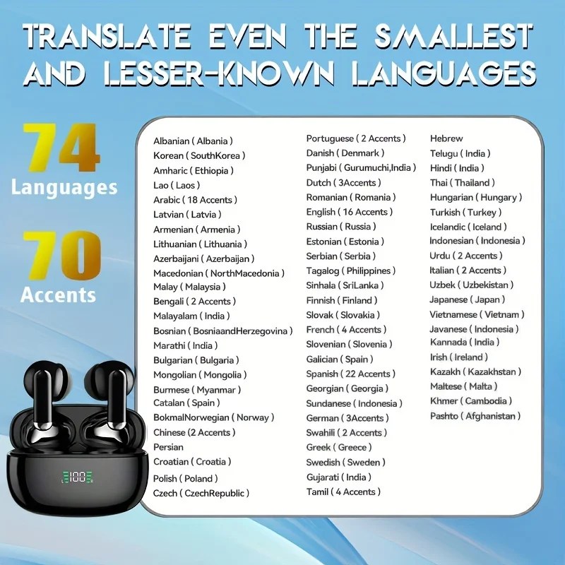 AI-Powered True Wireless Headset With 144 Language Support, Rechargeable 300mAh Lithium Polymer Battery, 30mAh Cell Capacity