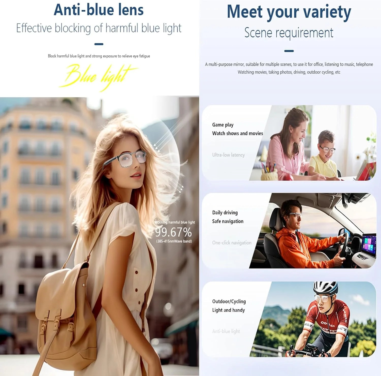 Ai Translation Glasses with more than 144 languages real time translation and touch, Voice Assistant,Anti blue light, Smart Music Glasses
