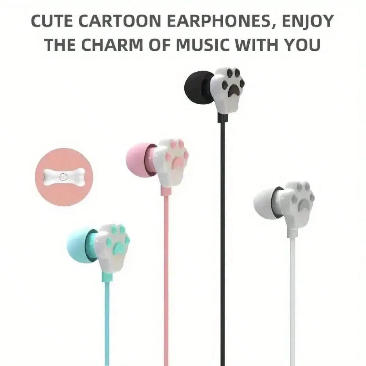 Cute Cat Paw Earphone, 3.5mm Wired In-Ear Headphone, With Mic Gaming Stereo Music Earbuds Headset, In-Ear Call Gift Headphone