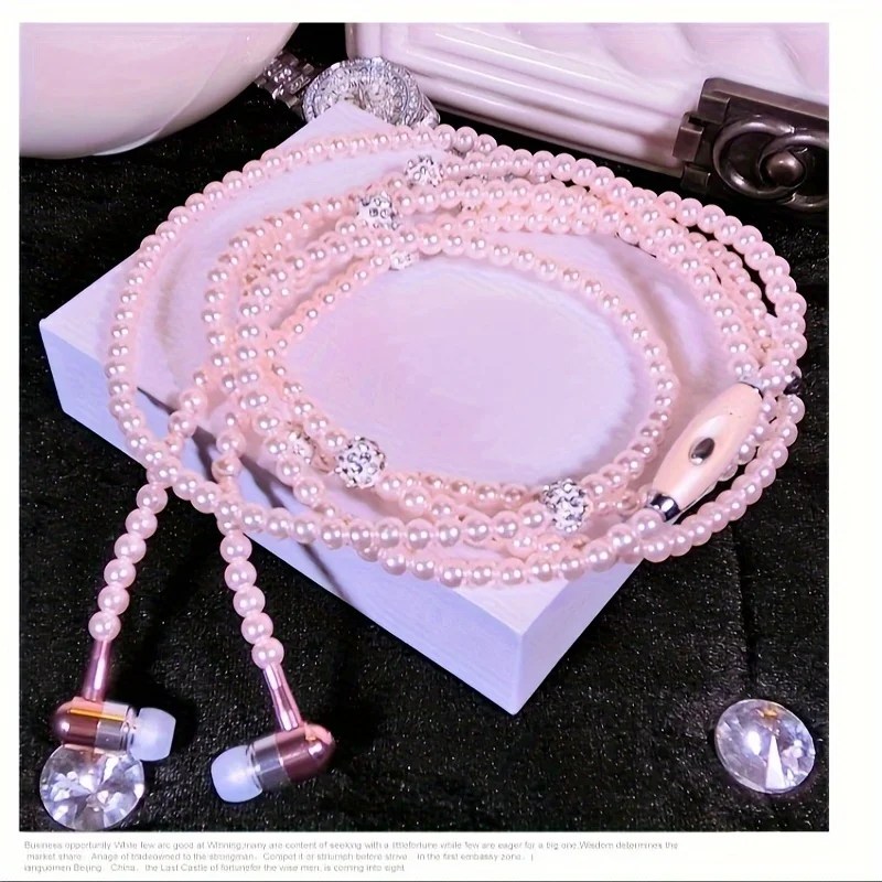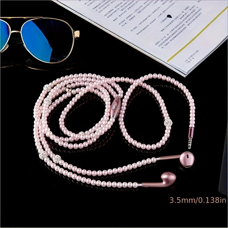 Faux Pearl Neck Hanging Earbuds – Stylish Wireless Earphones with Universal Bass Sound, Hands-Free Calls