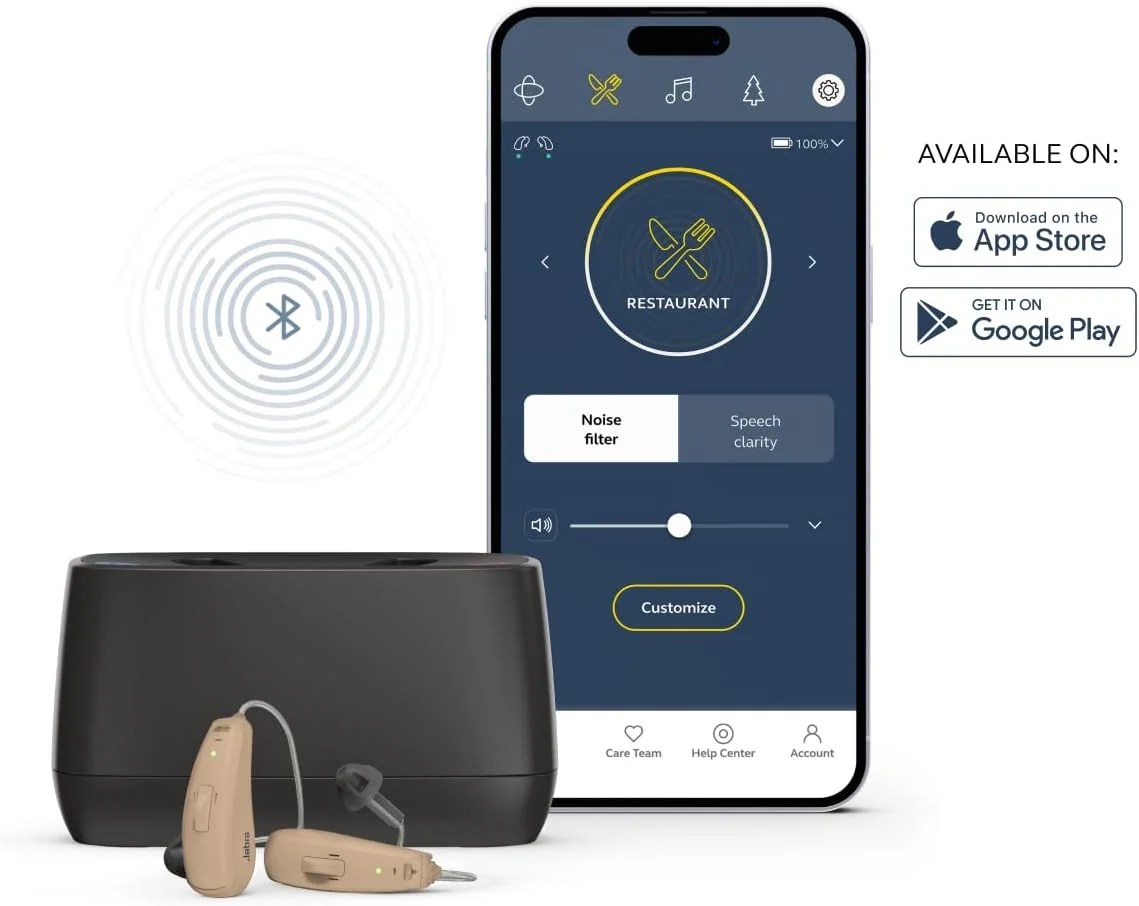 Medical-grade microphones improve speech clarity with built-in noise-cancelling technology for the most natural sound quality. Connect to the world around you using Bluetooth streaming and your compatible Apple/Android smartphone