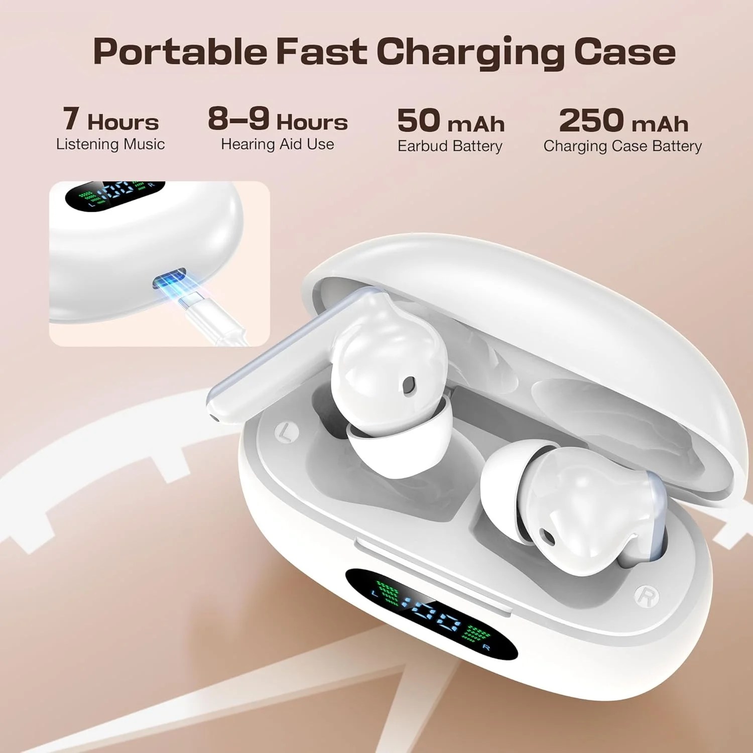 Our hearing aid and Bluetooth device are 2-in-1, designed for effortless listening. Simply take them out of the charging case and place them in your ears, and they will automatically activate the hearing aid function in just 3 seconds. In Bluetooth mode, you can adjust the volume using your phone and enjoy music, videos, and more.