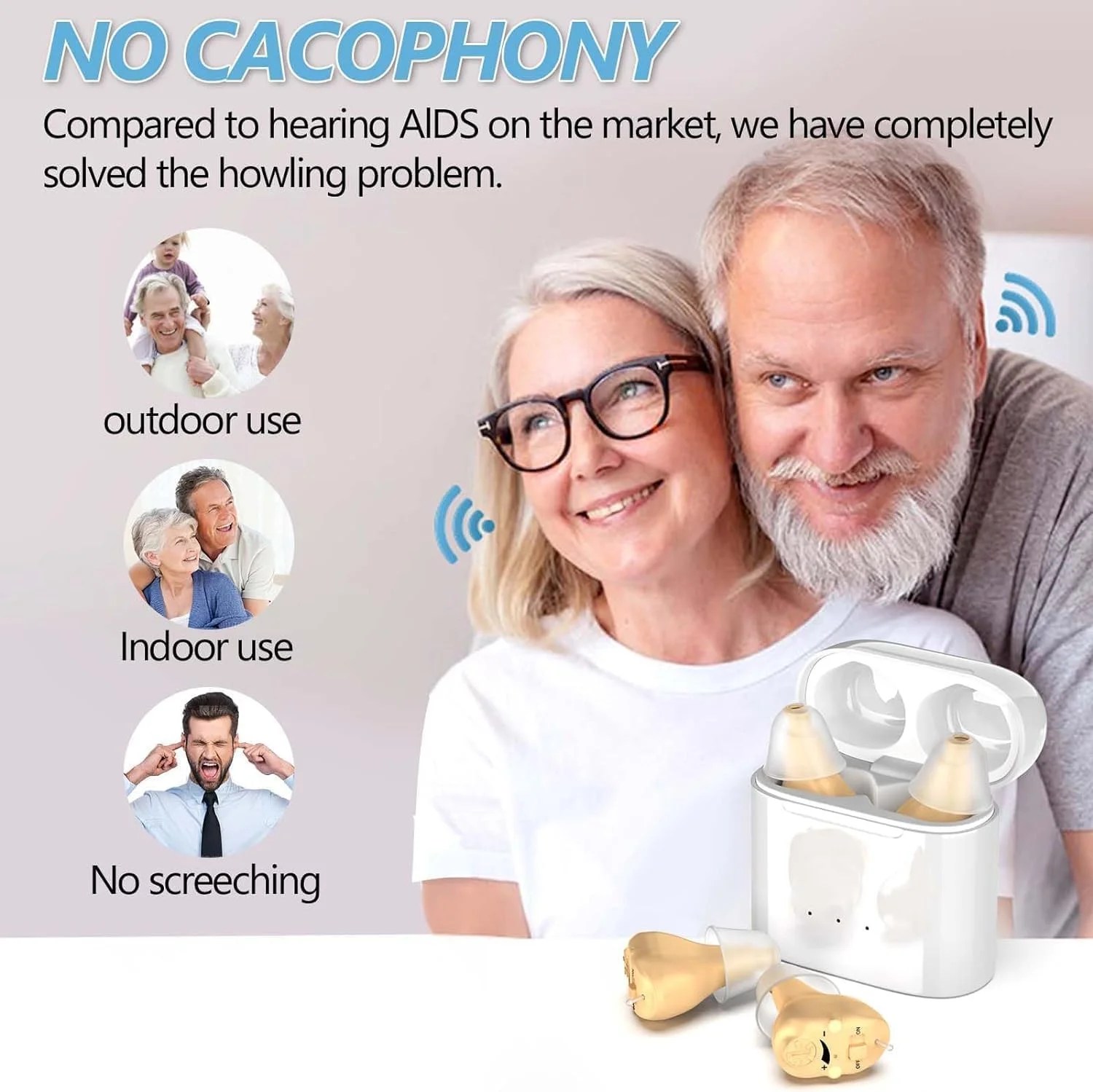 This hearing amplifier is ergonomically designed, soft and comfortable to the touch, and fits tightly into the ear canal without falling out easily. They look similar to headphones and are almost invisible when worn, eliminating the need for the embarrassment of wearing a sound amplifie