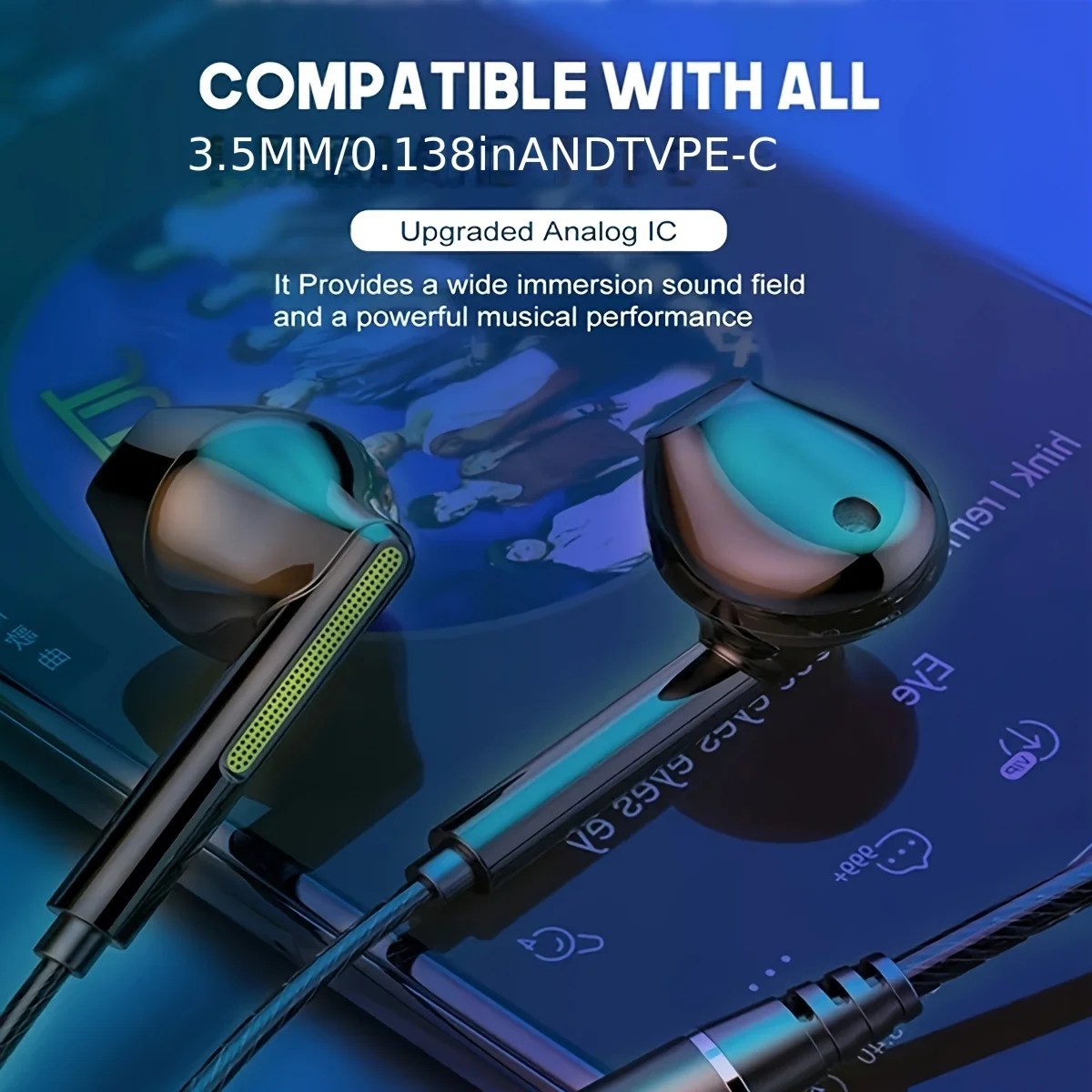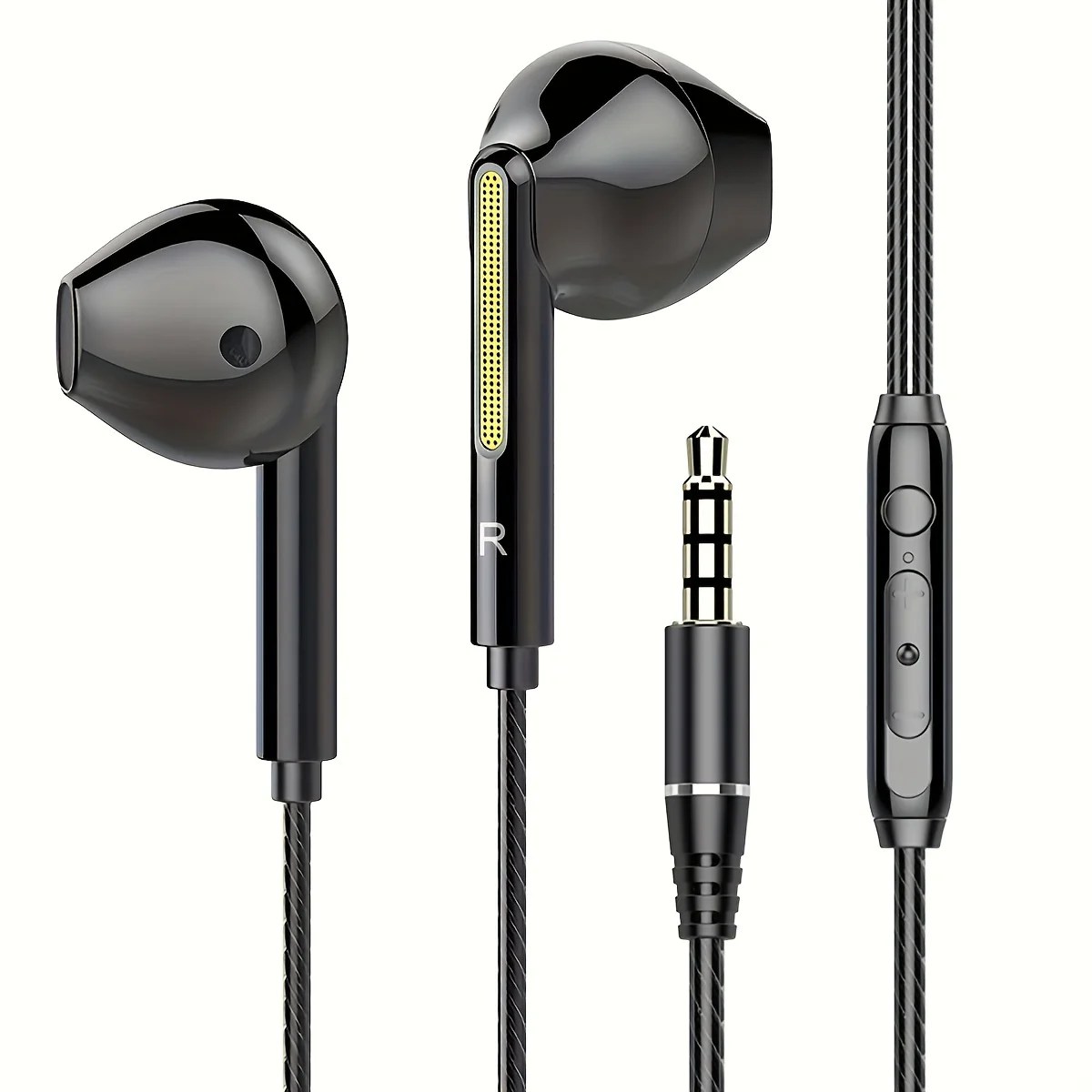 HiFi Stereo Wired Earbuds with 3.5mm Jack, In-Ear Headphones with Mic, Active Noise Cancelling, Tangle-Free Cable