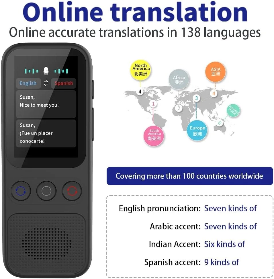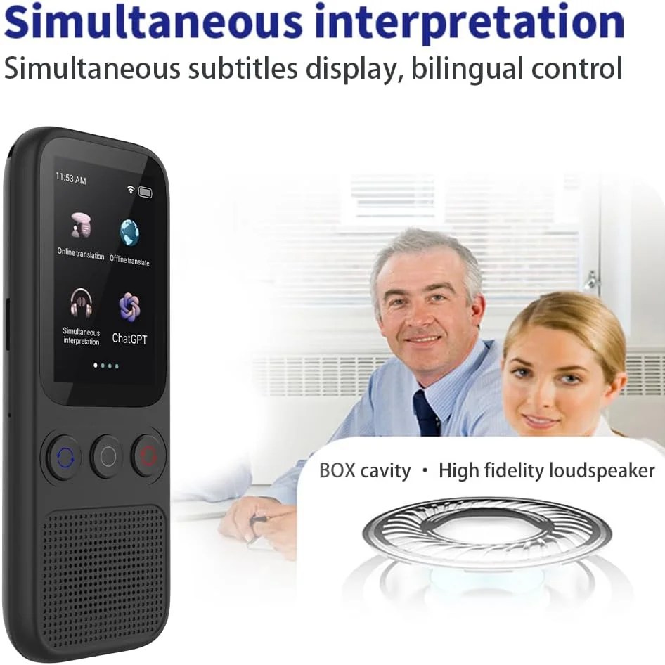 Enjoy clear audio and accurate input even in noisy environments with the noise-canceling microphone and high-fidelity speakers of our real-time translation device. The intelligent recording function ensures clear voice capture for convenient repeated listening.