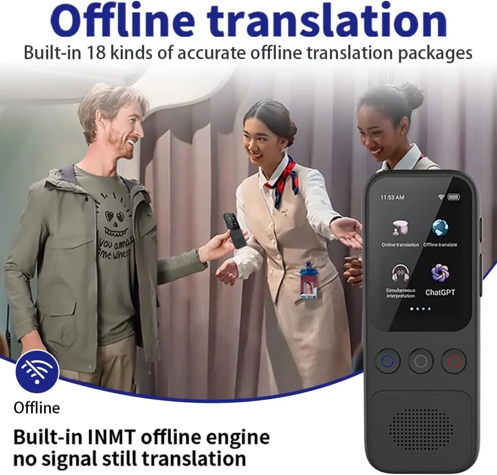 Immerse yourself in conversations with our instant offline language translator device. With simultaneous interpretation capabilities, you can understand and be understood by anyone. The device features a 2-inch color touch screen for flexible and convenient usage. It can also convert recordings to text and translate them into other languages simultaneously.