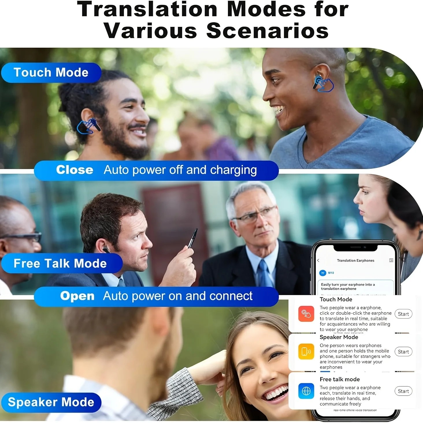 Real-Time Language Translation Earbuds – 144 Languages, Noise Reduction, Fast Response, Rechargeable 300mAh Battery