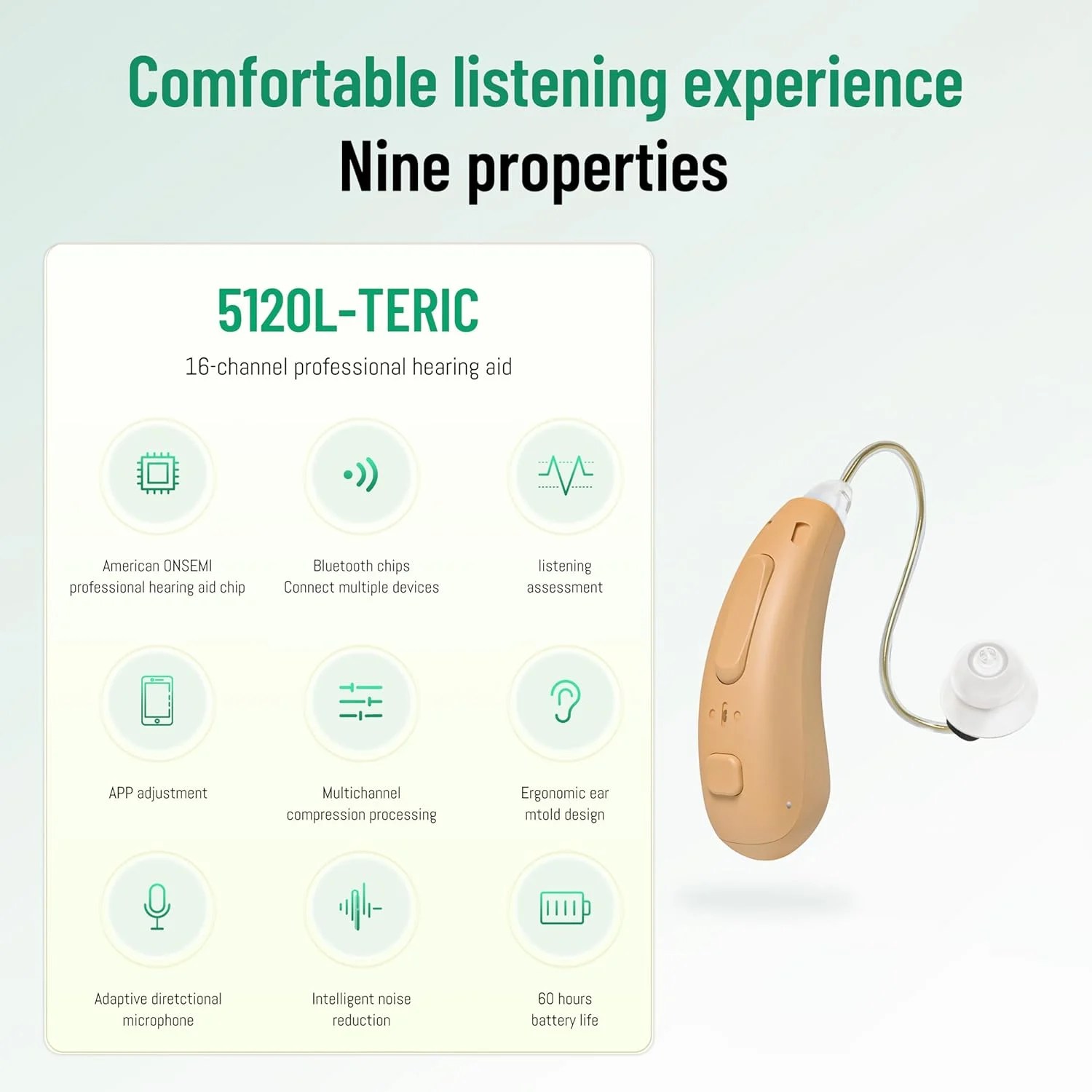 Rechargeable Hearing Aids for Seniors – Advanced Receiver-in-Canal (RIC) Design, 16-Channel Digital Sound, Noise-Cancelling, 2-Hour Quick Charge for 60-Hour Use, Superior Sound Quality