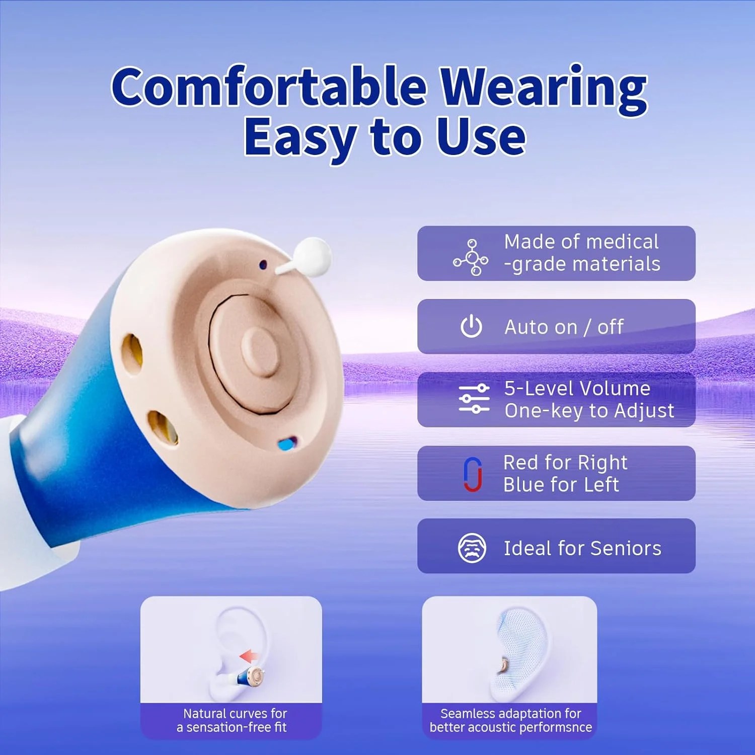 Rechargeable Hearing Aids for Seniors with Hearing loss, They are equipped with a smart noise reduction chip, providing clear sound quality and comfortable wearing