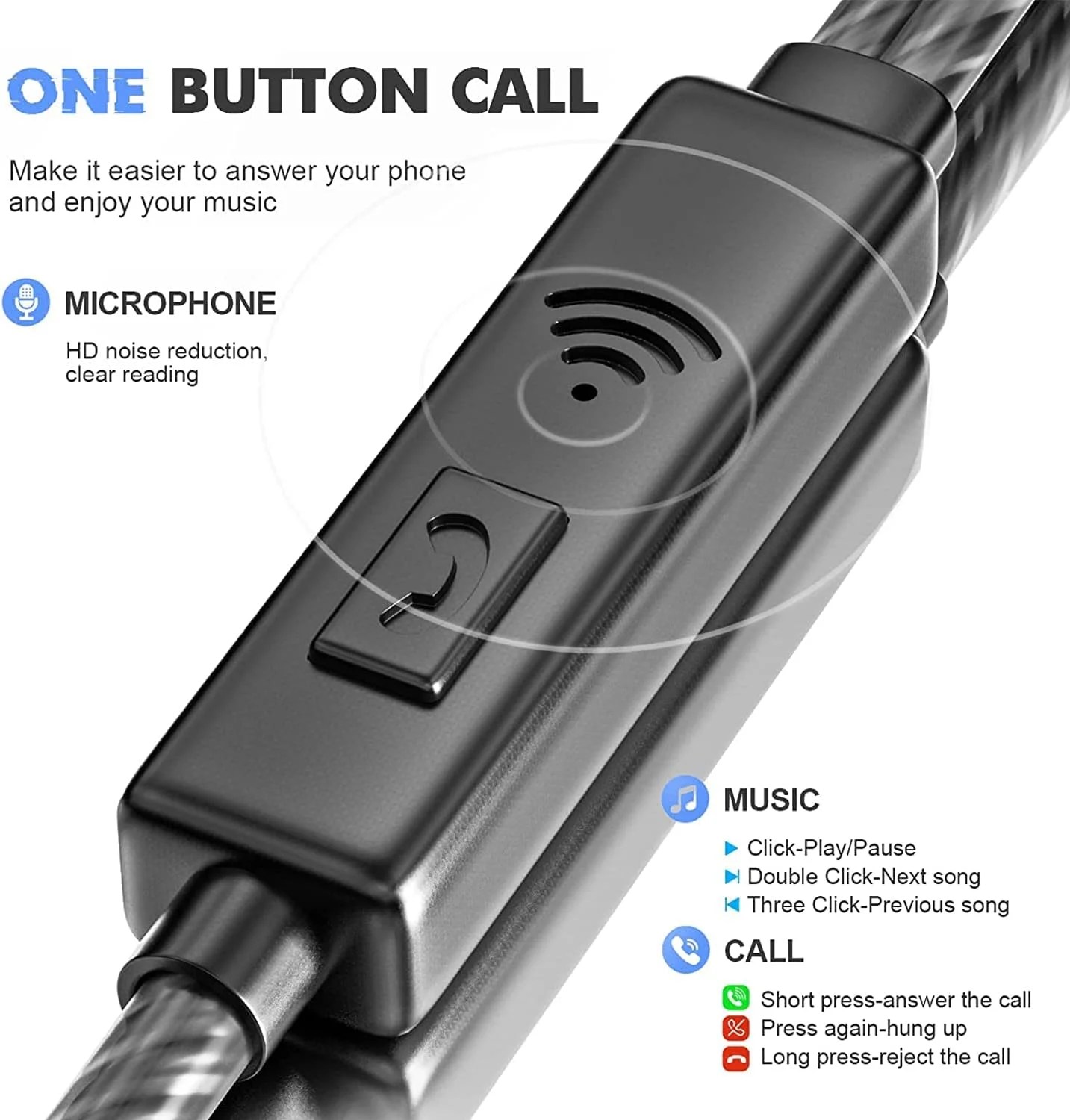 noise-canceling headphones with HD sound quality audio that let you talk freely, ​and a multi-function control button that can control the microphone and song at will, easily control answer/hang-up/play/pause/next track/previous track, wired headphones can free your hands